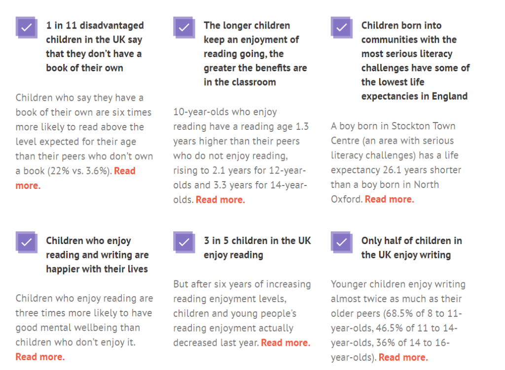 Having worked in some challenging contexts this is a massive concern, needless to mention the Matthew Effect; “The word rich get richer, and the word poor get poorer”. Research reveals that Low levels of literacy undermine the UK’s economic competitiveness, costing the taxpayer £2.5 billion every year (KPMG, 2009). Whilst the economy is a concern, as teachers, we tend to have more a philosophical approach to improving vocabulary, reading and literacy as a whole, at least we should, in my opinion. According to the National Literacy Trust: