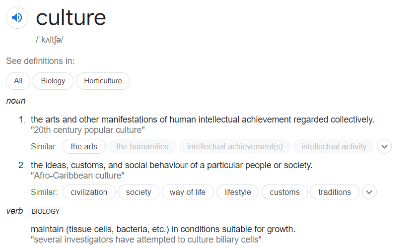 Being fairly certain that the culture I am referencing is not the verb variety I am left with two options:
